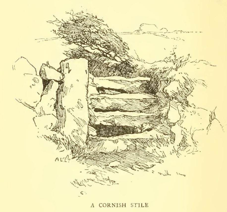 It is very pleasant to follow this slight track, this connecting thread, which brings to mind Richard Carew's account of the poor Cornish farmers of his time, three centuries ago, when he says that "amongst themselves they agree well and company lovingly together." I recall, too, that some social rodents, that live in communities, in collections of burrows or villages, have a track of that kind leading from village to village, worn by the feet of the little animals in visiting their neighbours. The fields being small you have innumerable stiles to cross in a five or a ten miles walk; but they do not want climbing, as they are very nearly all of that Cornish type made with half a dozen or more large slabs of granite placed gridiron-wise almost flush with the ground. You step easily over the stones: but the cattle do not follow, since, owing to their inability to see just where their feet will be set, their legs would come down between the slabs.