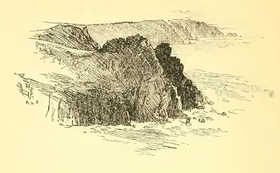 "The bright day was darkening, and a soft greyness began to creep over land and sea. No, not soft, that is the very last adjective applicable to the Land's End. Even on that calm day there was a fresh wind—there must be always a wind—and the air felt sharper and more salt than any sea-air I ever knew, stimulating too, so that our nerves were strung to the highest pitch of excitement. We felt able to do anything without fear and without fatigue.... Still, though a narrow and giddy path, there was a path, and the exploit, though a little risky, was not foolhardy. We should have been bitterly sorry not to have done it—not to have stood for one grand ten minutes where in all our lives we may never stand again, at the furthest point where footing is possible, gazing out on that magnificent circle of sea which sweeps over the submerged land of Lyonesse, far, far away into the wide Atlantic....