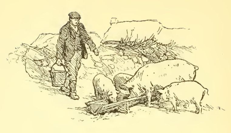 Cows are in most of the fields, the dairy being the main thing in these farms; and next to the small Jersey-like cow, the native breed, the pig ranks in importance. It is pleasant to see the pigs in these parts, as they are allowed more liberty in the fields and about the house than they usually get in other places; or, indeed, anywhere on this side of St. George's Channel. If not "the gintleman that pays the rint," the pig contributes a good deal towards it, and short of liberty to walk in at the front door and take his place in the family circle he has every consideration paid him. On going up to a farm-house one is sometimes obliged to get round or step over a pig lying comfortably in the path. One day, going to call on some friends who had taken lodgings at a small farm, I found a portly sow lying in the way a dozen yards or so from the front door. My friends were getting ready for a walk, and when we came out the sow got up and, placing herself at the side of the lady, set out with us. We all tried our best to turn her back, shouting indignantly at her and pushing her away with our sticks and boots, but all in vain—she would come. "I'm to blame," said the lady. "When we first came we had tea out of doors, and when this pig came up to look at us I foolishly gave her a slice of bread and butter and spoke kindly to her, and now I can't get away from her. I give her nothing, and I try to escape her attention, but she watches the door, and when she sees me with my things on she insists on keeping with me even if I walk miles. It is most inconvenient." It certainly was, and we carefully avoided the village for fear of remarks. Fowls, too, are reared in numbers, and it is a great grievance of the farmers that foxes must be religiously preserved along this coast where they cannot be hunted. Here, again, I am reminded of Carew's Survey of Cornwall, in which he writes: "The fox planteth his dwelling in the steep cliffs of the seaside, where he possesseth holds, so many in number, so dangerous of access, and so full of windings, as in a manner it falleth out a matter impossible to disseize him of his ancient inheritance." He still keeps it, and after three centuries is more secure in it than ever, since there is now no stronger law than this unwritten one which gives immunity to the fox.