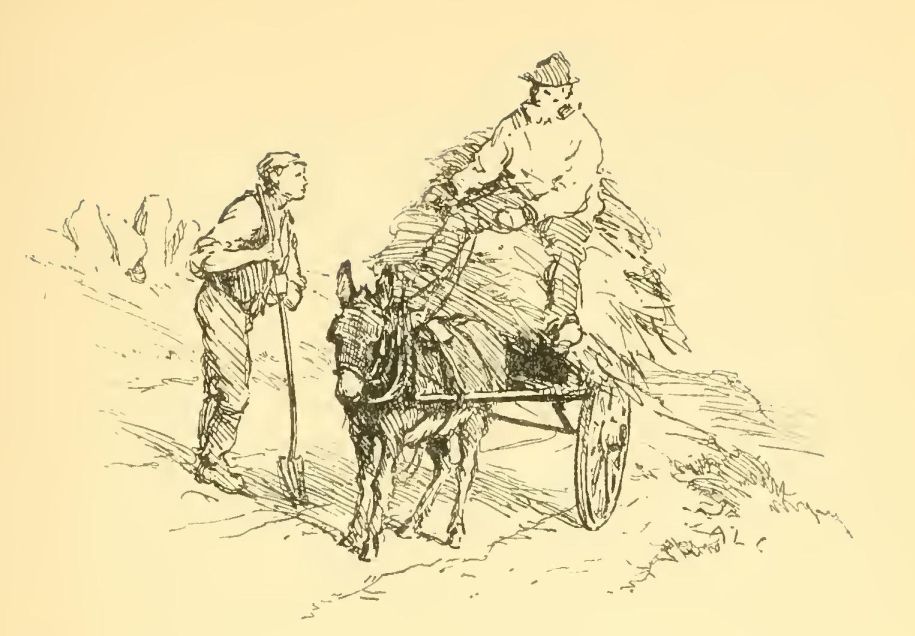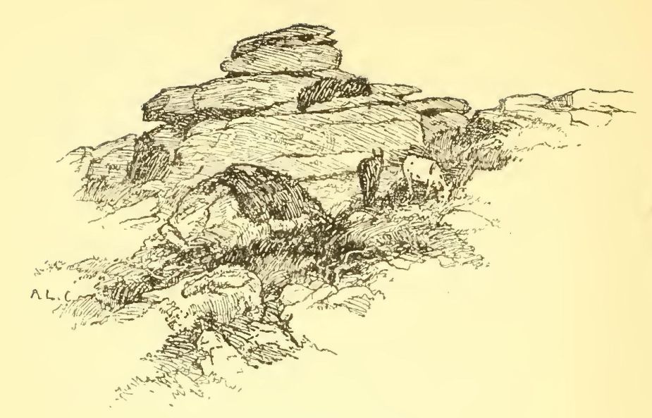 There is very little cultivation—hardly more than is required for the use of the farm, and in many fields even this little is carried on under difficulties on account of the stones. The stones are taken out and piled on to the walls or hedges at the side, and though this process has been going on for centuries many boulders and huge blocks of granite still remain in the little fields. I was amused one day at the sight of a field of only about two acres on which I counted 135 stones appearing like huge mushrooms and toadstools over the ground. Corn had been grown on it, and I asked the farmer how it was managed. He answered that he would laugh to see a man and horses from any other part of the country try to cultivate that field and others like it. Here the men are used to it, and horses know their part so well that if the share touches a stone they stop instantly and wait for the ploughman's word to move on.
