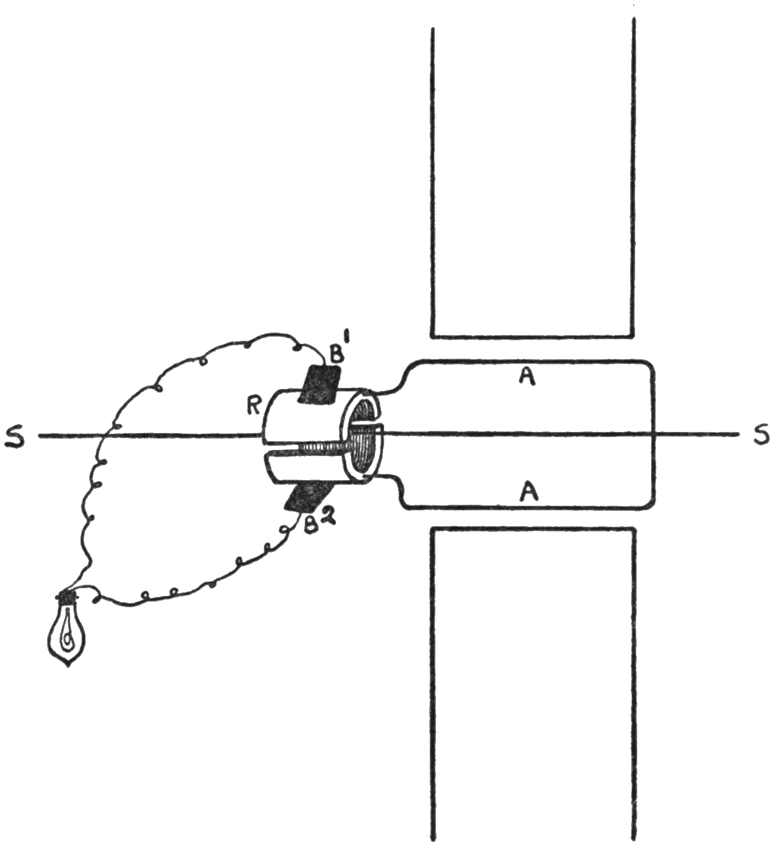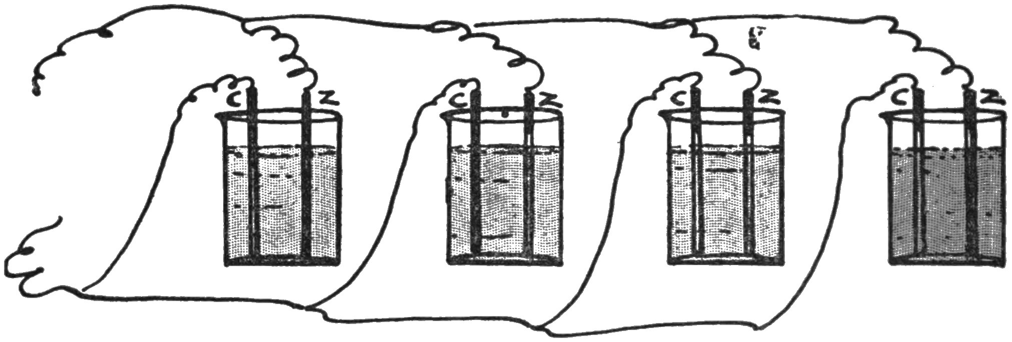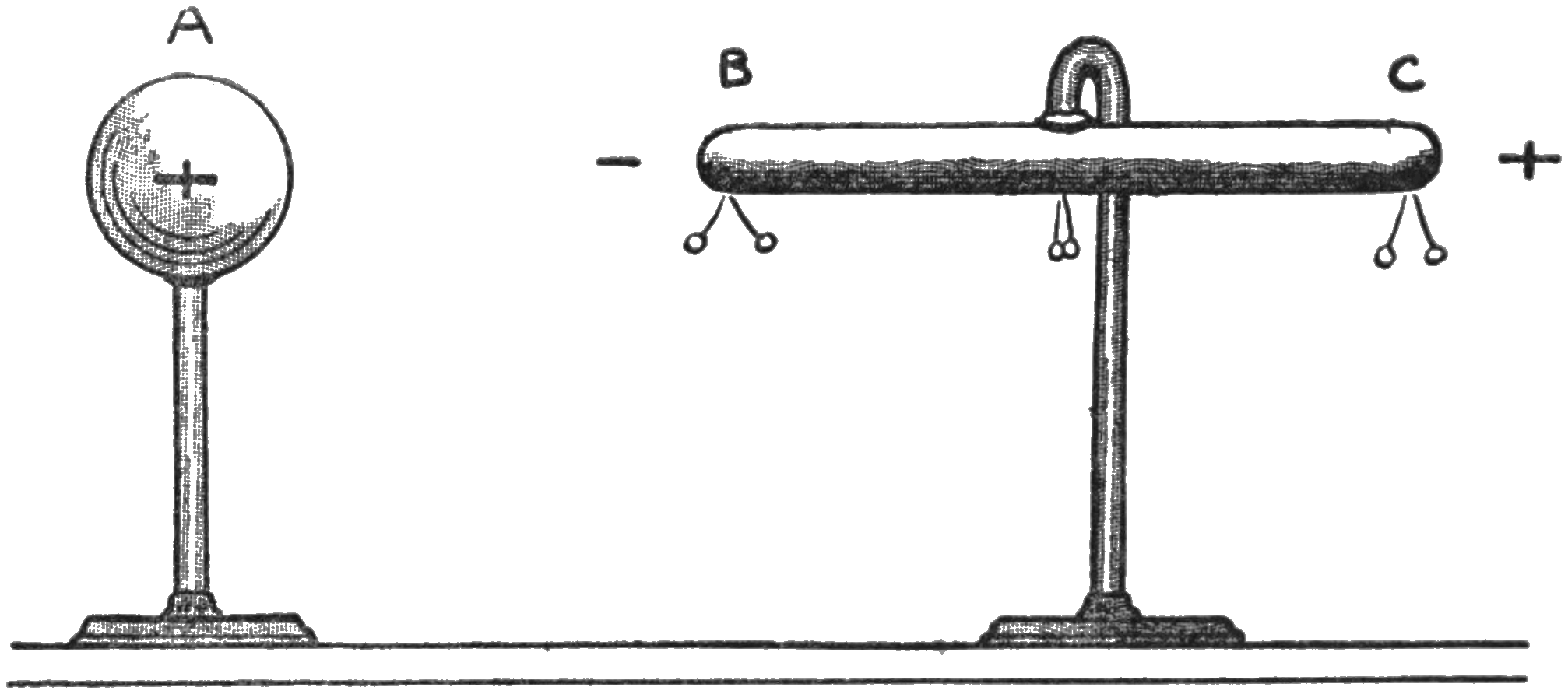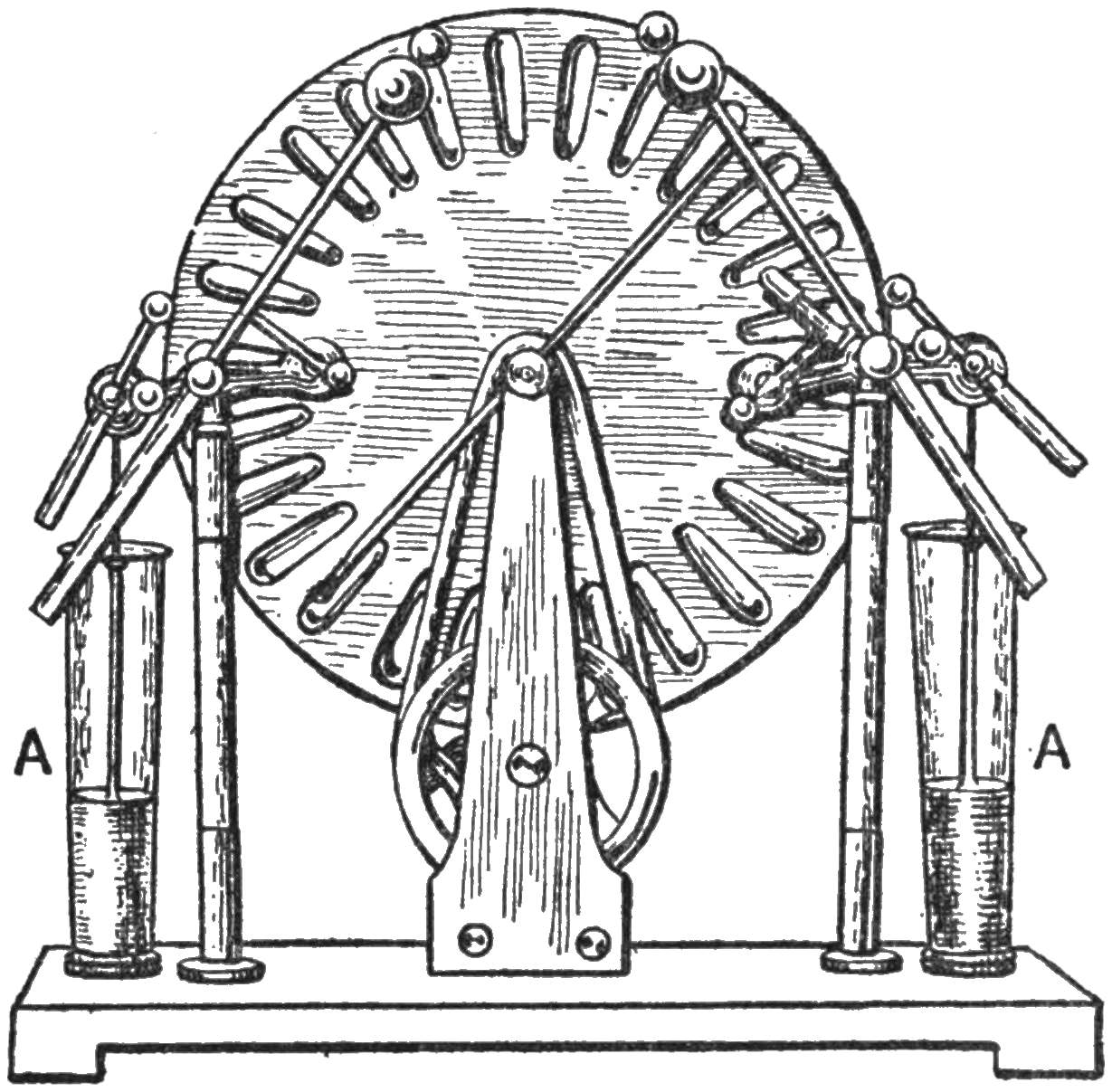 Thales and his contemporaries seem to have made no serious attempts to explain the attraction of the rubbed amber, and indeed so little importance was attached to the discovery that it was completely forgotten. About 321 B.C. one Theophrastus found that a certain mineral called “lyncurium” gained attractive powers when rubbed, but again little attention was paid to the matter, and astonishing as it may seem, no further progress worth mention was made until towards the close of the sixteenth century, when Doctor Gilbert of Colchester began to experiment seriously. This man was born about 1543, and took his degree of doctor of medicine at Cambridge in 1569. He was very successful in his medical work, and became President of the College of Physicians, and later on physician to Queen Elizabeth. He had a true instinct for scientific research, and was not content to accept statements on the authority of others, but tested everything for himself. He found that sulphur, resin, sealing-wax, and many other substances4 behaved like amber when rubbed, but he failed to get any results from certain other substances, such as the metals. He therefore called the former substances “electrics,” and the latter “anelectrics,” or non-electrics. His researches were continued by other investigators, and from him dates the science of electricity.
