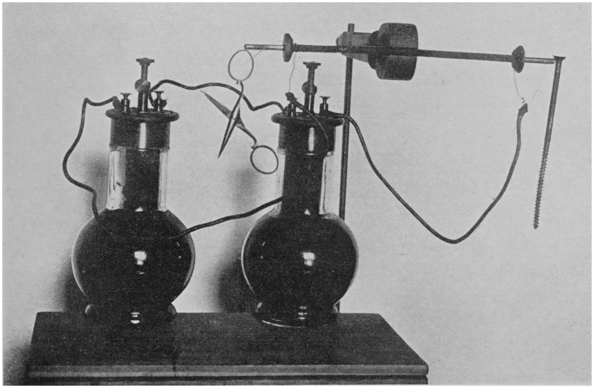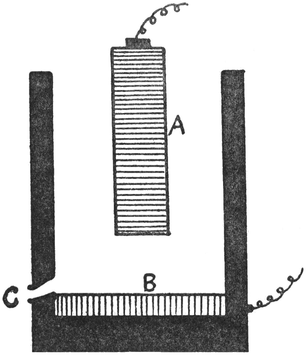 In order to trace the first glimmerings of electrical knowledge we must leave the thunderstorm and pass on to more trivial matters. On certain sea-coasts the ancients found a transparent yellow substance capable of taking a high polish, and much to be desired as an ornament; and about 600 years B.C. it was discovered that this substance,3 when rubbed, gained the power of drawing to it bits of straw, feathers, and other light bodies. This discovery is generally credited to a Greek philosopher named Thales, 941–563 B.C., and it must be regarded as the first step towards the foundation of electrical science. The yellow substance was amber. We now know it to be simply a sort of fossilized resin, but the Greeks gave it a much more romantic origin. When Phaeton’s rashness brought him to an untimely end, his sorrowing sisters, the Heliades, were changed into poplar trees, and their tears into amber. Amongst the names given to the Sun-god was Alector, which means the shining one, and so the tears of the Heliades came to have the name Electron, or the shining thing. Unlike most of the old legends, this story of the fate of the Sun-maidens is of great importance to us, for from the word “electron” we get the name Electricity.