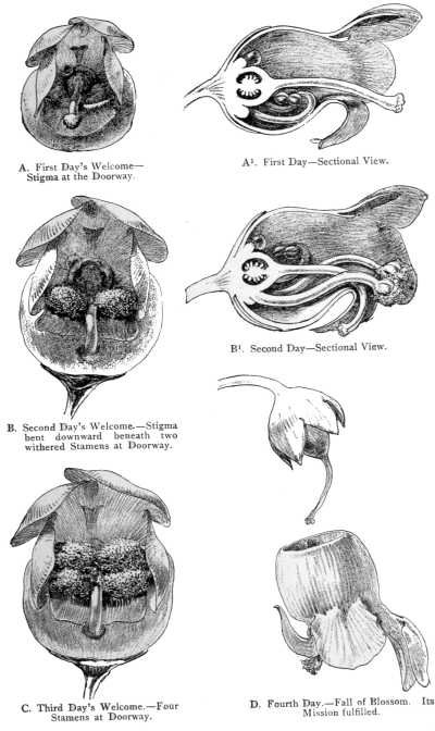 p. 31 "The pollen is thus pushed against the projecting stigma, as shown at Fig. 3, and thus, one by one, the flowers are cross-sterilized." changed to "The pollen is thus pushed against the projecting stigma, as shown at Fig. 3, and thus, one by one, the flowers are cross-fertilized."