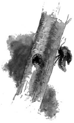 In a moment I was attacking the foe, my hands stroking his rough barky forehead, and my fingers penetrating his eyes, which proved to be two holes in the bark of a fallen log, the farther side of which disclosed a brilliant, luminous patch which,[19] as I invaded it with my hand, proved to be bare, exposed wood. Taking hold of the loose bark, a vigorous pull dislodged a great piece some three feet long, at the same time liberating a glare of greenish light from the exposed surface of the log, which was responded to in sympathy by the inner surface of the slab of bark in my hands, in all representing about six square feet of brilliant phosphorescence.