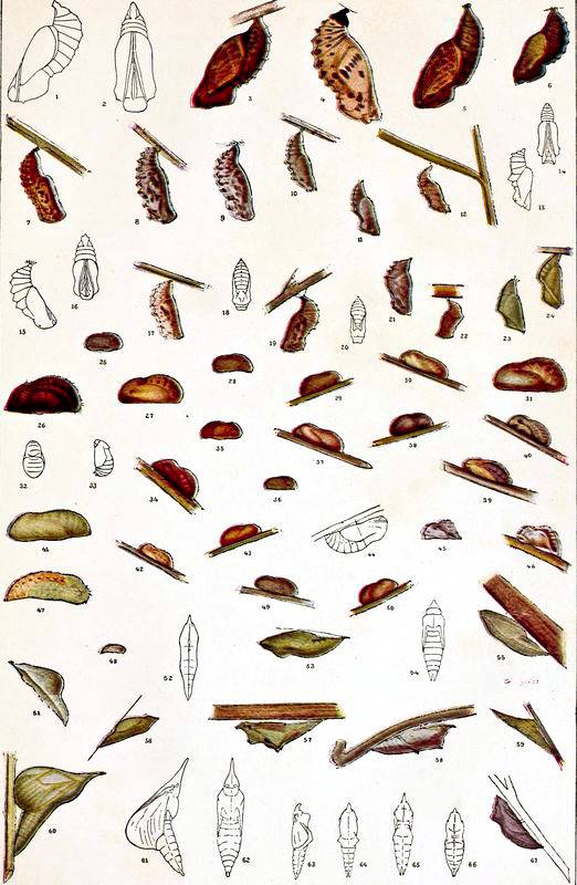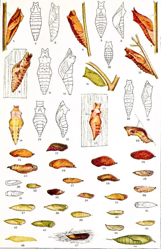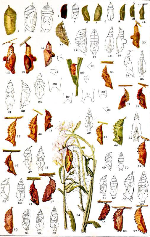 The Eggs of Butterflies. Caterpillars: Structure, Form, Color, etc.; Moults; Food of Caterpillars; Duration of Larval State; Transformation. The Pupa, or Chrysalis: The Form of Chrysalids; Duration of Pupal Life; The Transformation from the Chrysalis to the Imago. Anatomy of Butterflies: The Head; The Thorax; The Abdomen; The Legs; The Wings; Internal Organs; Polymorphism and Dimorphism; Albinism and Melanism; Monstrosities; Mimicry. The Distribution of Butterflies.
