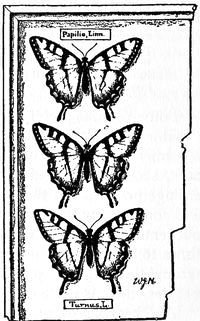 | 2. Papilio turnus, Linnæus, dimorphic ♁, | Edwards, ♂, under side. |