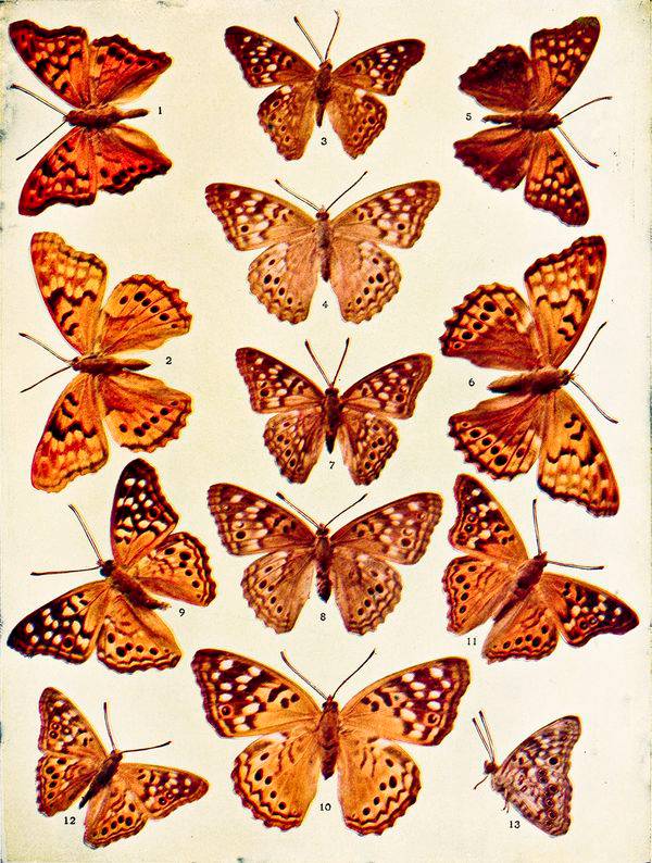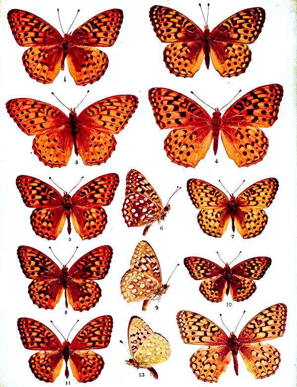 The successful development in recent months of the process of reproducing in colors photographic representations of objects has been to a certain degree the argument for the publication of this book at the present time. A few years ago the preparation of such a work as this at the low price at which it is sold would have been an utter impossibility. "The Butterflies of North America," by W.H. Edwards, published in three volumes, is sold at one hundred and fifty dollars, and, as I know, is sold even at this price below the cost of manufacture. "The Butterflies of New England," by Dr. S.H. Scudder, in three volumes, is sold at seventy-five dollars, and likewise represents at this price only[ vii] a partial return to the learned author for the money, labor, and time expended upon it. The present volume, while not pretending to vie in any respect with the magnificence of the illustrations contained in these beautiful and costly works, nevertheless presents in recognizable form almost every species figured in them, and in addition a multitude of others, many of which have never before been delineated. So far as possible I have employed, in making the illustrations, the original types from which the author of the species drew his descriptions. This fact will no doubt add greatly to the value of the work, as it will not only serve as a popular guide, but have utility also for the scientific student.
