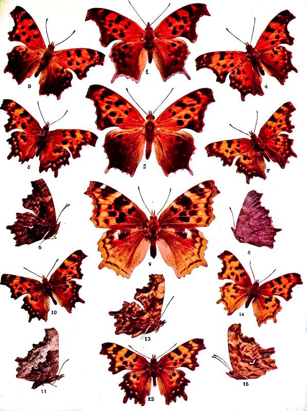Pyrameis Cardui, Linn., (The Painted Lady); 2. P. Huntera, Fabr., ♂ (Hunter's Butterfly); 3. Grapta Interrogationis, Fabr., ♂ (The Question
