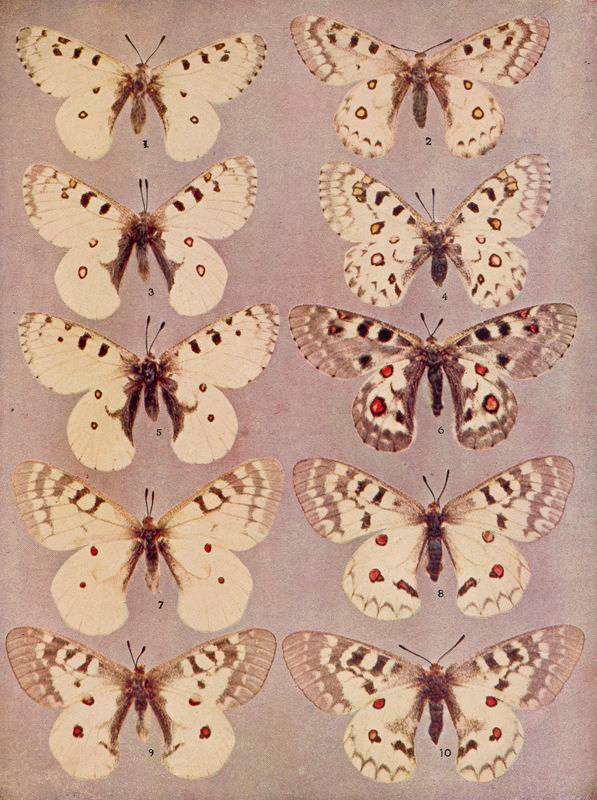 | 3. Parnassius smintheus, Dbl.-Hew., ♂. | 8. Parnassius clodius, Ménétries, ♁ |