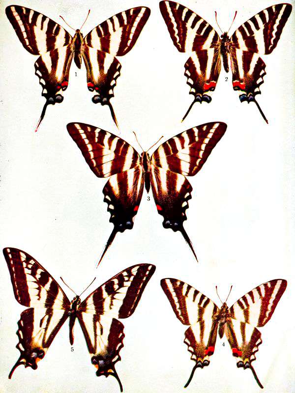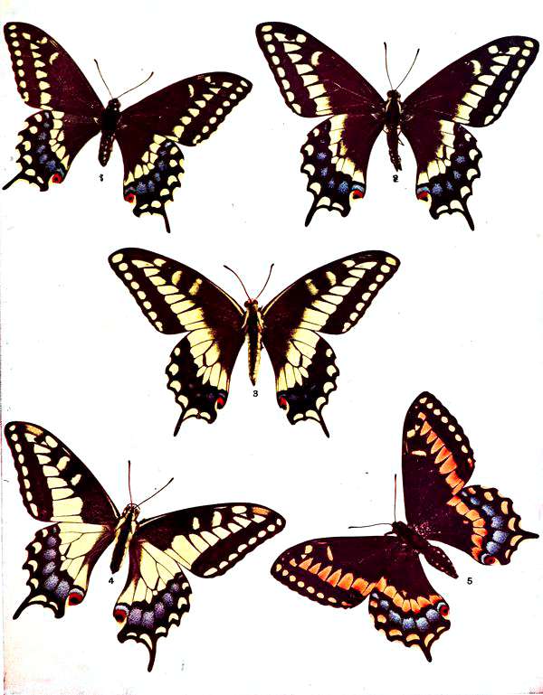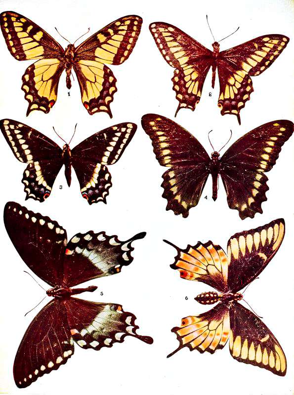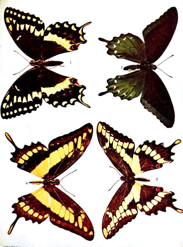 | 1. Papilio palamedes, Drury, ♁. | 3. Papilio cresphontes, Cramer, ♂. |