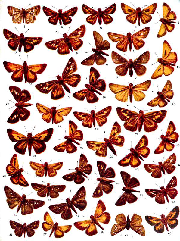 | 17. Hesperia nessus, Edwards, ♂. | 39. Atrytone pocahontas, Scudder, ♁. |