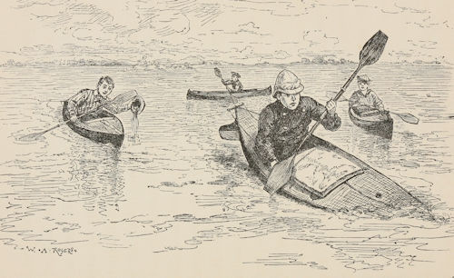 The Commodore, who, in spite of his magnificent title, wasn’t in the least alarming, laughed, and said, “That is a question that I’ve made up my mind never to try to answer. But I’ll give you the names of four canoeists, each of whom uses a different variety of canoe. You go and see them, listen to what they say, believe it all, and then come back and see me, and we’ll come to a decision.” He then wrote four notes of introduction, gave them to the boys, and sent them away.