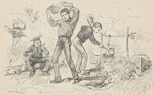 Of course the subject of names for the canoes had been settled long before the canoes arrived. Joe had named his “Rob Roy” the Dawn; Harry’s canoe was the Sunshine; Tom’s the Twilight; and Charley’s the Midnight. The last name did not seem particularly appropriate to a canoe, but it was in keeping with the other names, and, as the canoe was painted black, it might have been supposed to have some reference to her color.