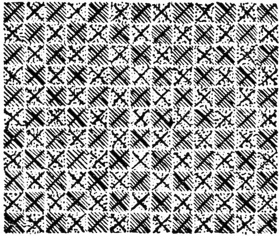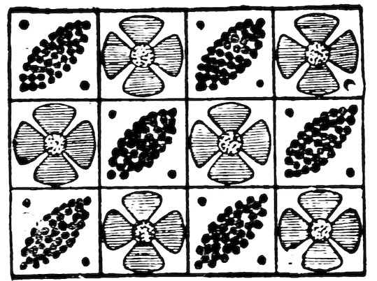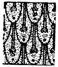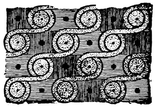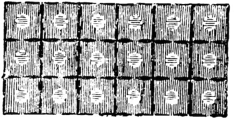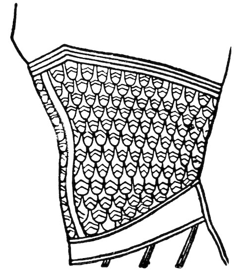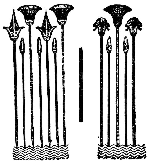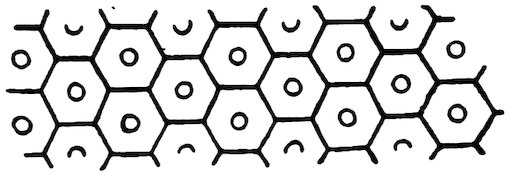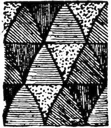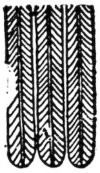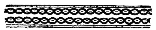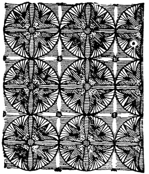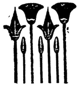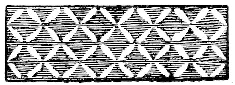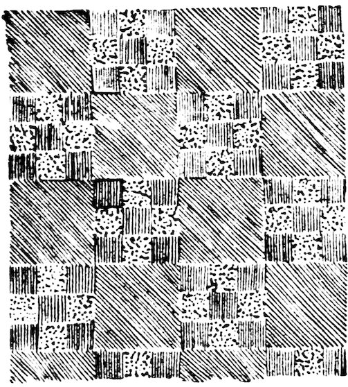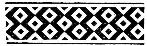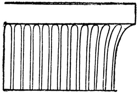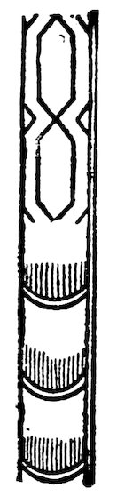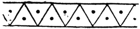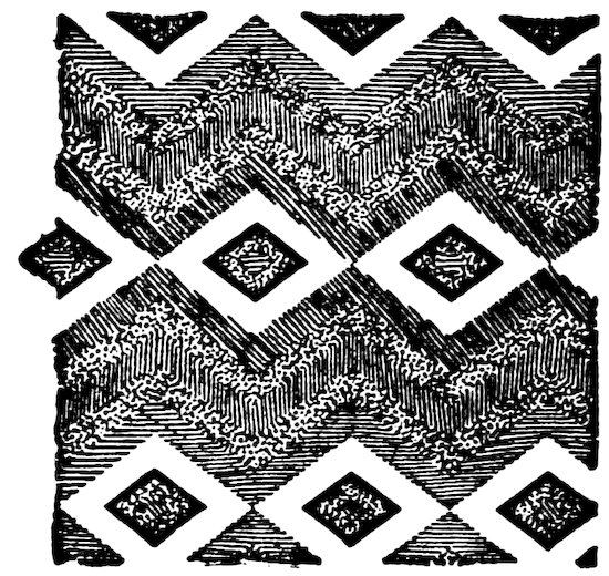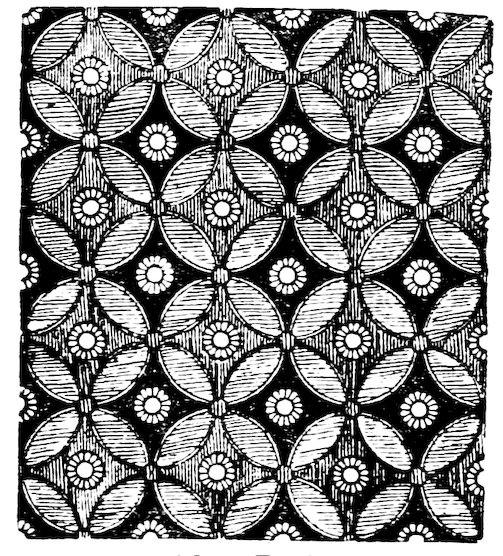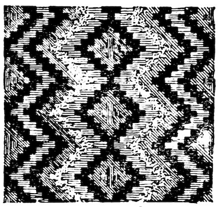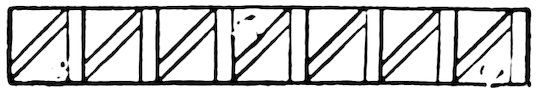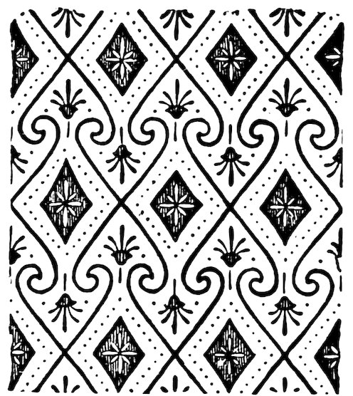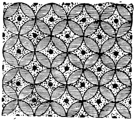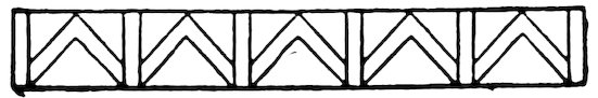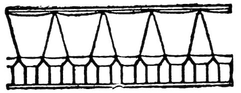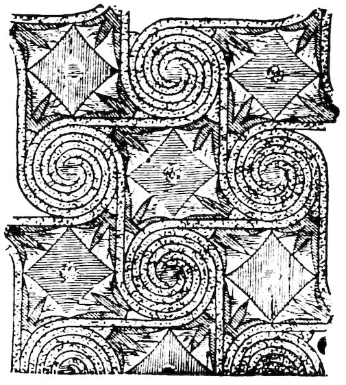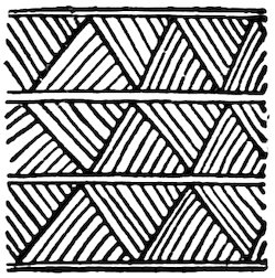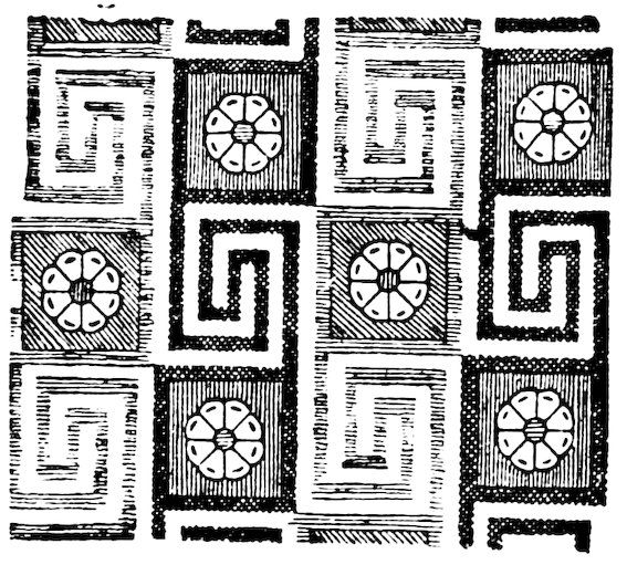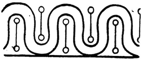As our object is the history and evolution of the various elements of decoration, we may classify these elements under four divisions. There is the simplest geometrical ornament of lines and spirals and curves, and 10of surfaces divided by these into squares and circles. There is the natural ornament of copying feathers, flowers, plants, and animals. There is structural ornament which results from the structural necessities of building and of manufacture: these often result in the perpetuation of defects or copies of defects, like the circle stamped in the plain end of meat tins which is made to imitate the circular patch soldered on to the other end, so trying to establish a balance of appearance. Many architectural devices and difficulties are perpetuated for us in this way long after the original purpose has passed away; such as the cylindrical bosses projecting from the walls in Moslem architecture, which imitate the projecting ends of pillars torn from ruins and built into the wall, though rather too long for the position. The origin and the imitation can be seen side by side at Jerusalem. Structural ornament is therefore 11often of the greatest historical value as pointing to a condition of things that has since vanished.