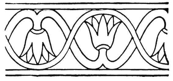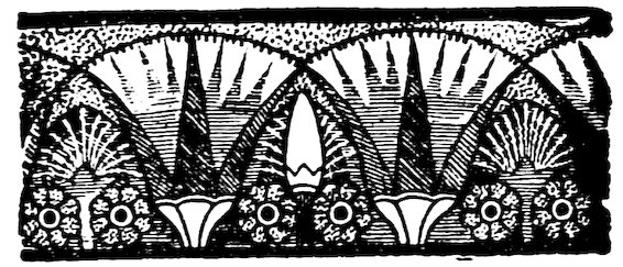 Now we can see a source for most of our familiar elements of design in the decoration which was used in Egypt long before any example that is known to us outside of that land. And it is to Egypt then that we are logically bound to look as the origin of these motives. If, then, we seek the source of most of the various elements of the decoration which covers our walls, our floors, our dishes, our book-covers, and even our railway stations, we must begin by studying Egypt.