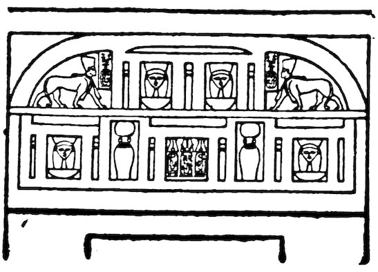 In other directions we see the same ability. In the adaptation of the scenes of peace or of war to the gigantic wall surfaces of the pylons and temples; in the grand situations chosen for the buildings, from the platform of cliffs for the pyramids at Gizeh, to the graceful island of Philæ; in the profusion of ornament on the small objects of daily life, which yet never appear inappropriate until a debased period;—in all these different manners the Egyptian showed a 5variety of capacity in design and decoration which has not been exceeded by any other people.