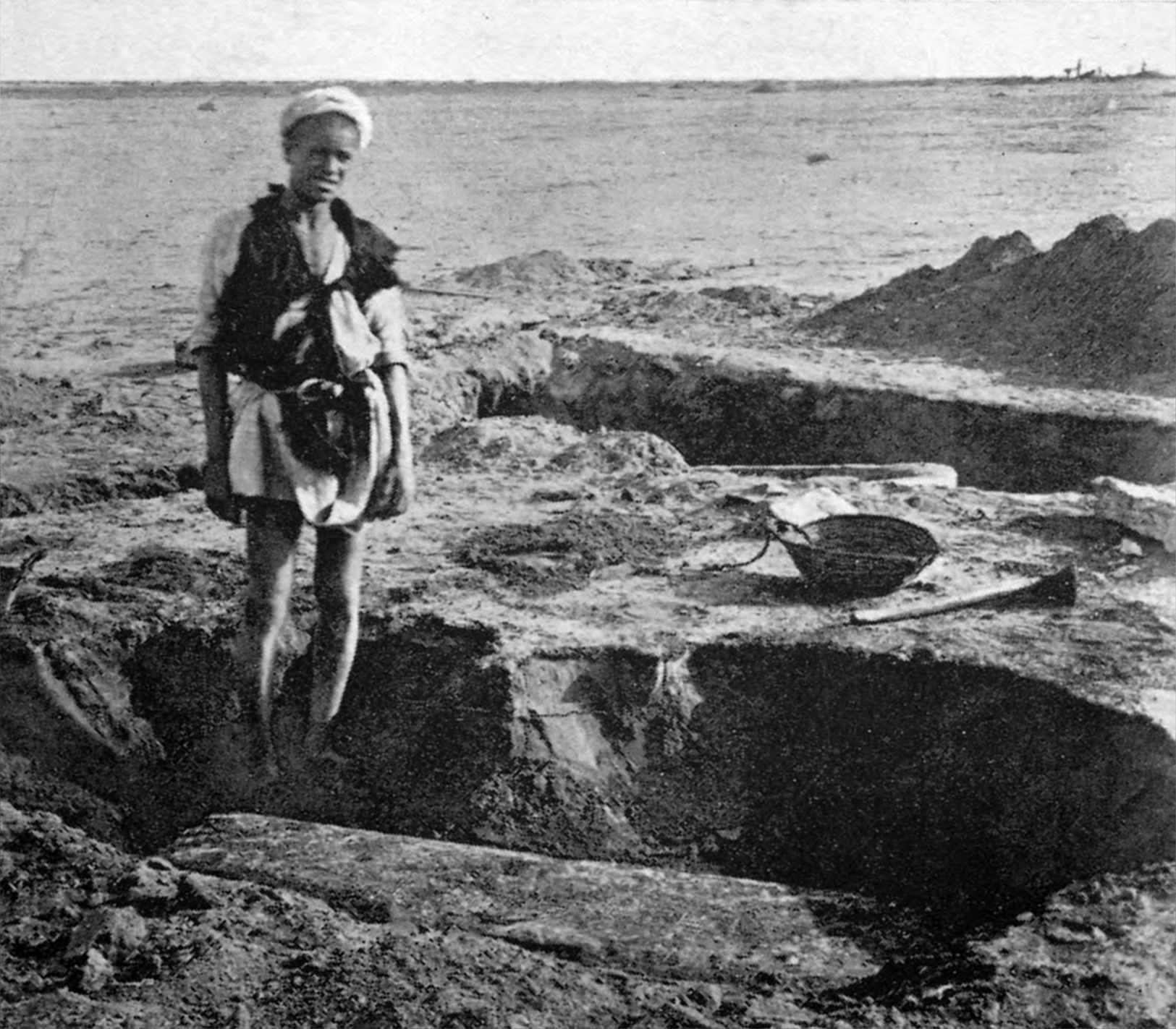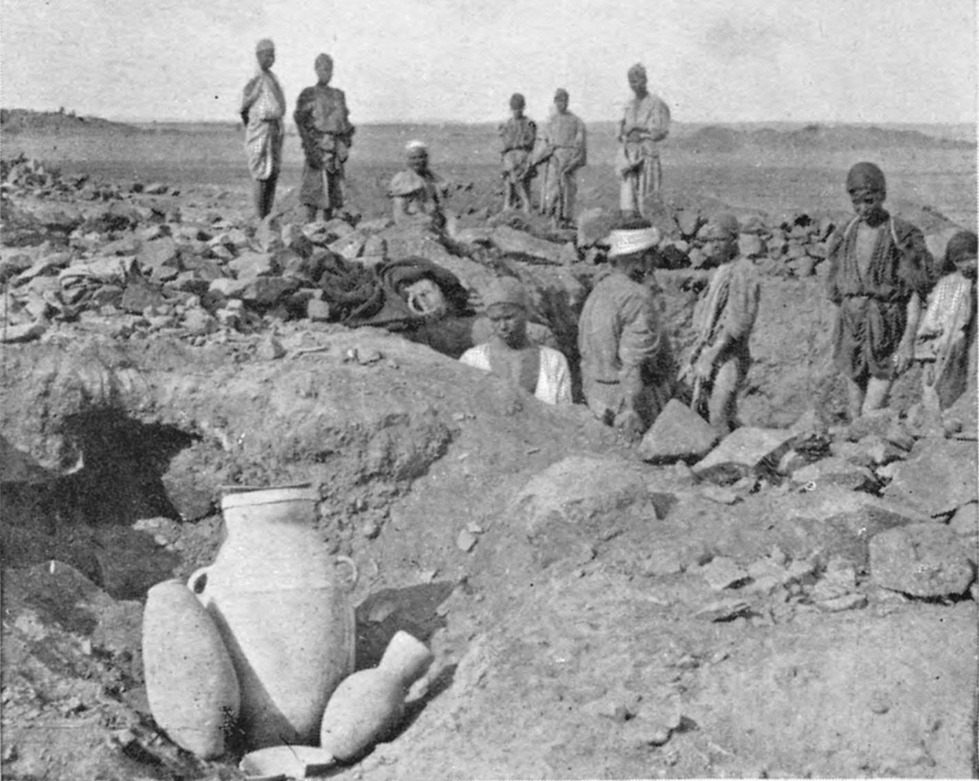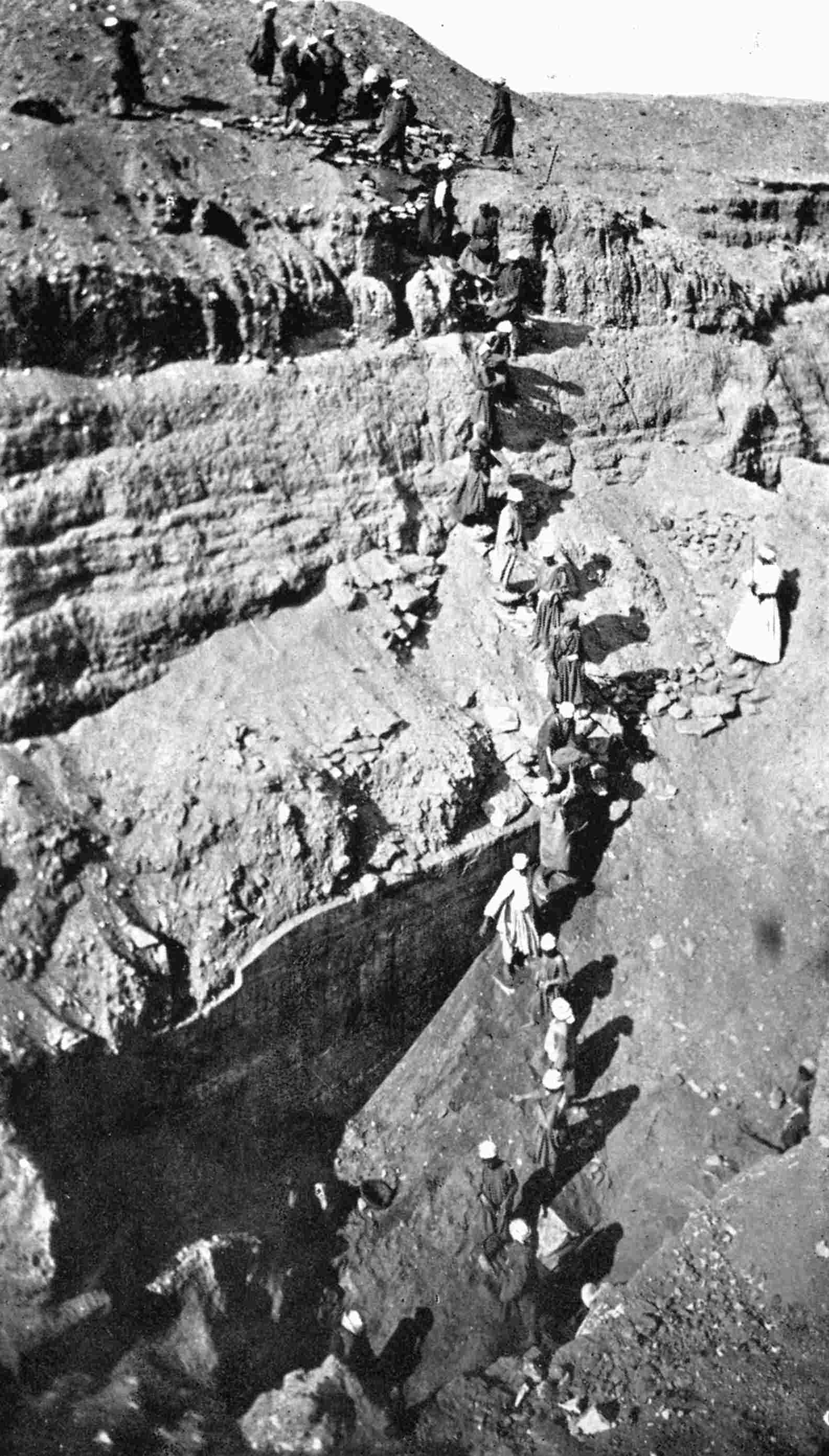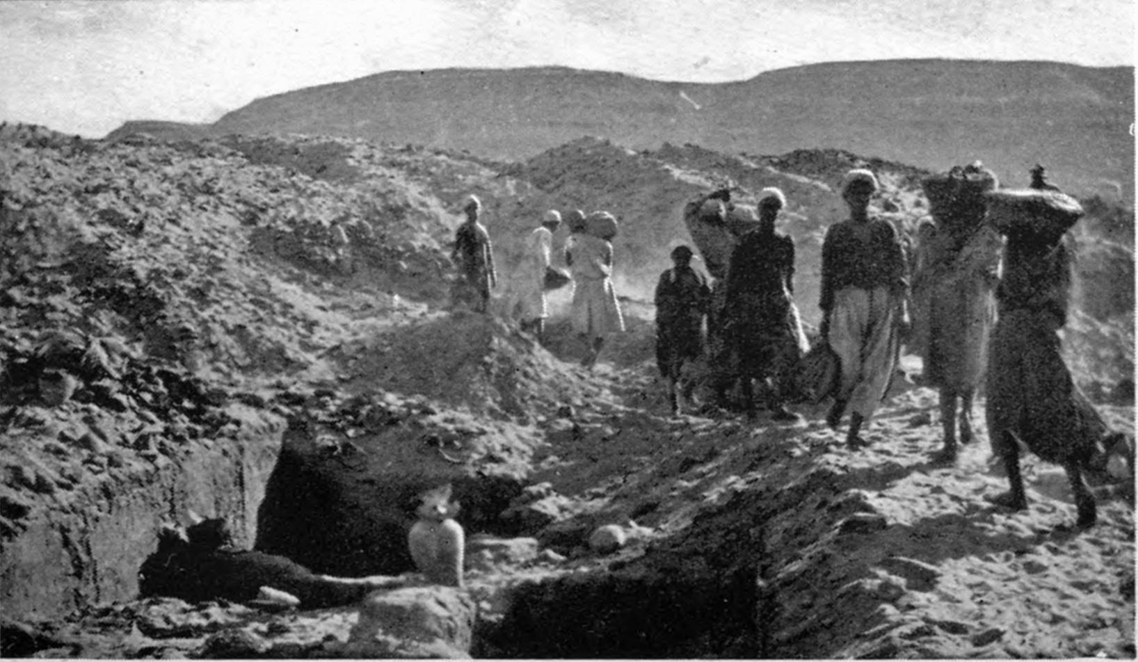 Fig. 1. Chain of boys clearing the Osireion at Abydos.