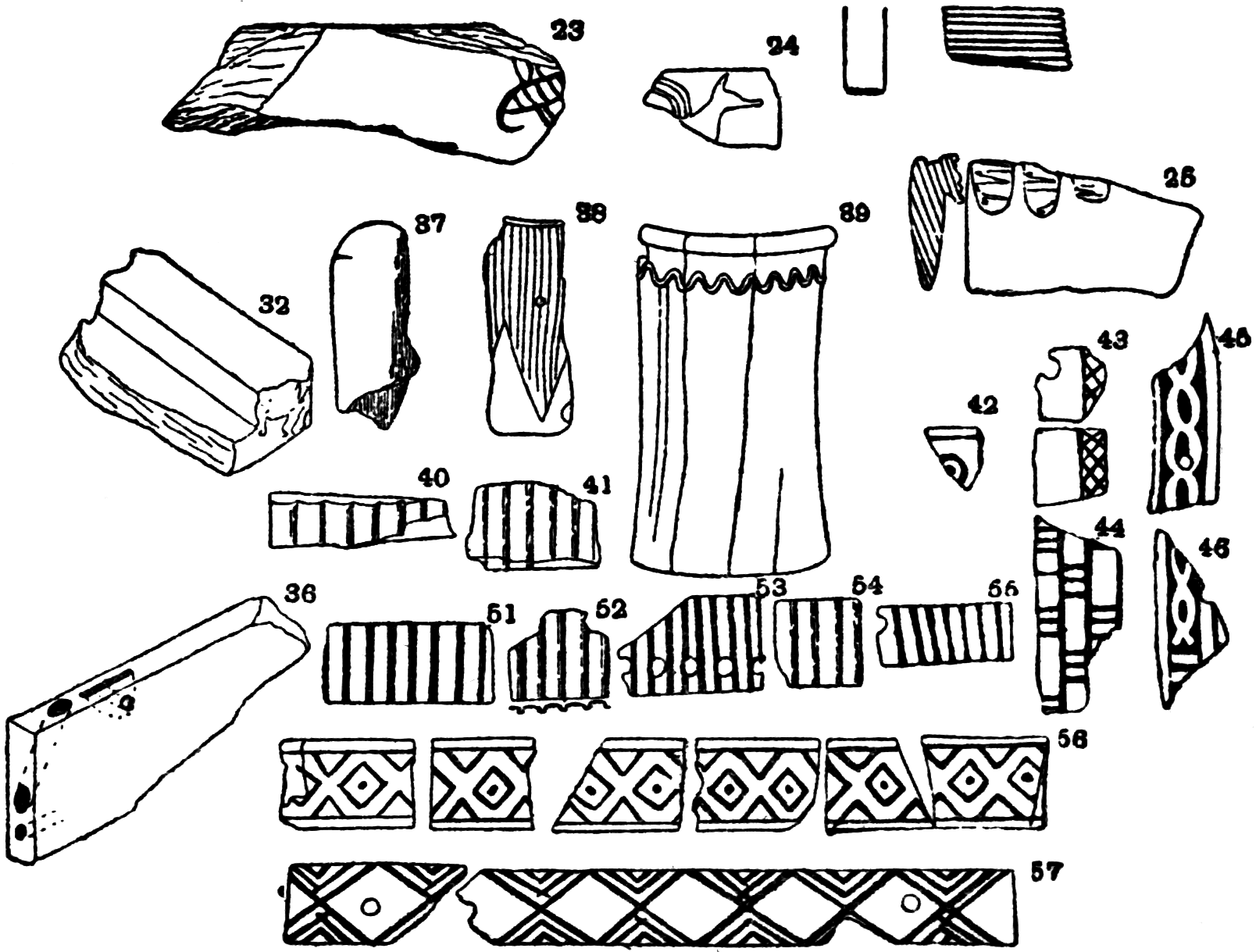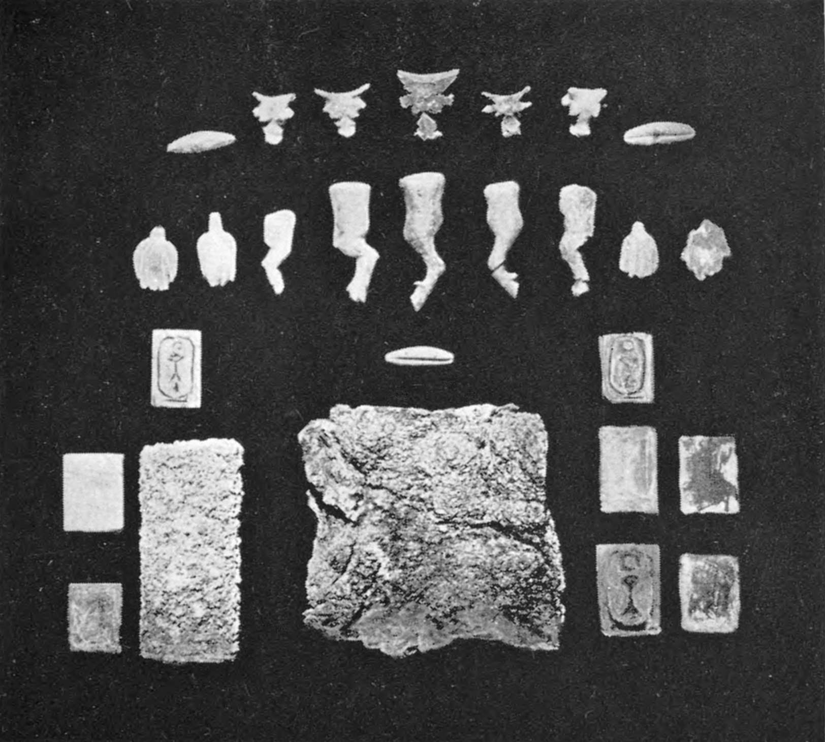 | Stone, 86; Pottery, 88; Textiles, 89; Wood, 89; Ivory, 91; Papyri, 93; Bead-work, 95; Stucco, 96; Gold, 98; Silver, 98; Copper, 99; Bronze, 100; Lead, 102; Iron, 102; Sorting, 102 | 85–104xiii |