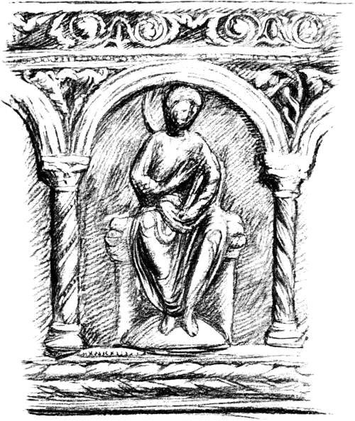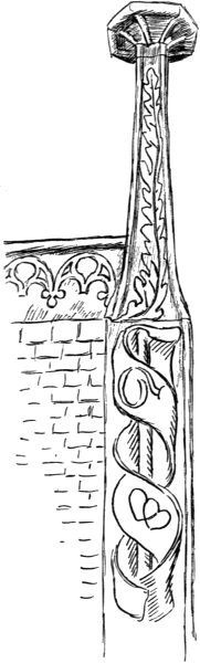 This is still more evident in the mediæval delight in the tall leaded spires, not in their aspect as mere roof coverings, but intrinsically as metal shrines, looking on them with their decorations as vast pieces of goldsmith’s tabernacle work. The steep pitch of the roof of the main building when applied to a square tower quite naturally produced leaded spires. These already appear in the drawing made of Canterbury Cathedral about the year 1160.[19] That these metal-sheeted spires were the best loved form, and that stone was adopted at last but as a truce with fire is proved by the spires of lead which appear in the wall paintings (those that were at St. Stephen’s for instance), in the MSS., and by the splendid leaded spire of St. Paul’s which we shall speak of below. The spire so treated is not a mere roof, or a cheap substitute for stone, but takes its place in metal-cased architecture, as do also the leaded Byzantine domes of St. Sophia and St. Mark’s.