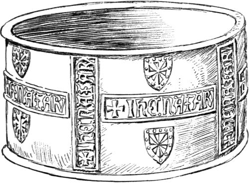 The ram’s head (see Fig. 4) for instance has[11] only the frontal, the lips, and the horn, made out, the rest the imagination sees transparently below the field. In the words of Blake “it is everything and nothing.” The raised rim is a good protection.