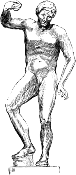 The plummets are interesting to us as builders’ implements; there are two or three dozen in the British Museum, about three inches high and one inch at the base tapering upwards: some are marked with the letter A on one side and on the obverse a little relief, a throne-seat with an owl. The[9] owl was Athene’s own symbol, and appears on the coinage of Athens in a form from which this seems copied. The Acropolis was her throne. We will stretch our imaginations far enough to believe that the A stands for Athens and that these are the very implements used in setting the masonry of one of the corner stones of the world’s art—the Parthenon.