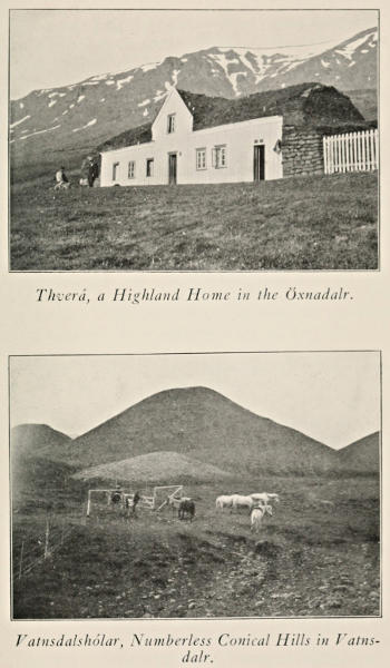 I desire to make the following acknowledgments:—I have both Henderson and Miss Oswald to thank for my first interest and their observations and remarks have ever been in my mind for a comparison with my own experiences. My thanks are due to many Icelanders, to all those who unselfishly opened their doors that I might share their hospitality, more especially to those who in kindness answered my numerous questions, often quite personal, about their countrymen and customs,—in particular do I mention Helgi Zoëga, who has been untiring in furnishing ponies, provisions and sound advice; Steffán Steffánson, who has written many lengthy letters in answer to inquiries; Ólafur Eyvindsson, my friend and trusty guide, whose name frequently occurs in these pages and Dr. Geir T. Zoëga, First Master of the Latin School at Reykjavik, for his advice and council. Finally, I acknowledge my indebtedness to her, to whom this volume is dedicated, for her kindly criticism of these pages while in progress of composition and for the final reading and examination of proofs.