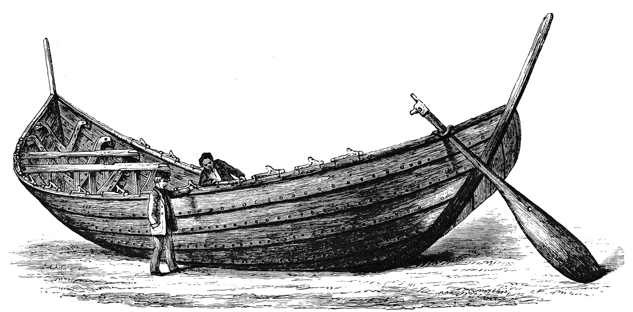 - ——, ancient clinker-built boat of, discovered in Denmark, pp. 335-7