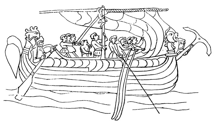 - Saxons, first coming of, and of other Teutonic tribes; their early ships probably copies of Roman galleys, pp. 327-8