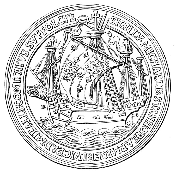 - Stanhope, Michael, Vice-Admiral of Suffolk, fine seal of, p. 401