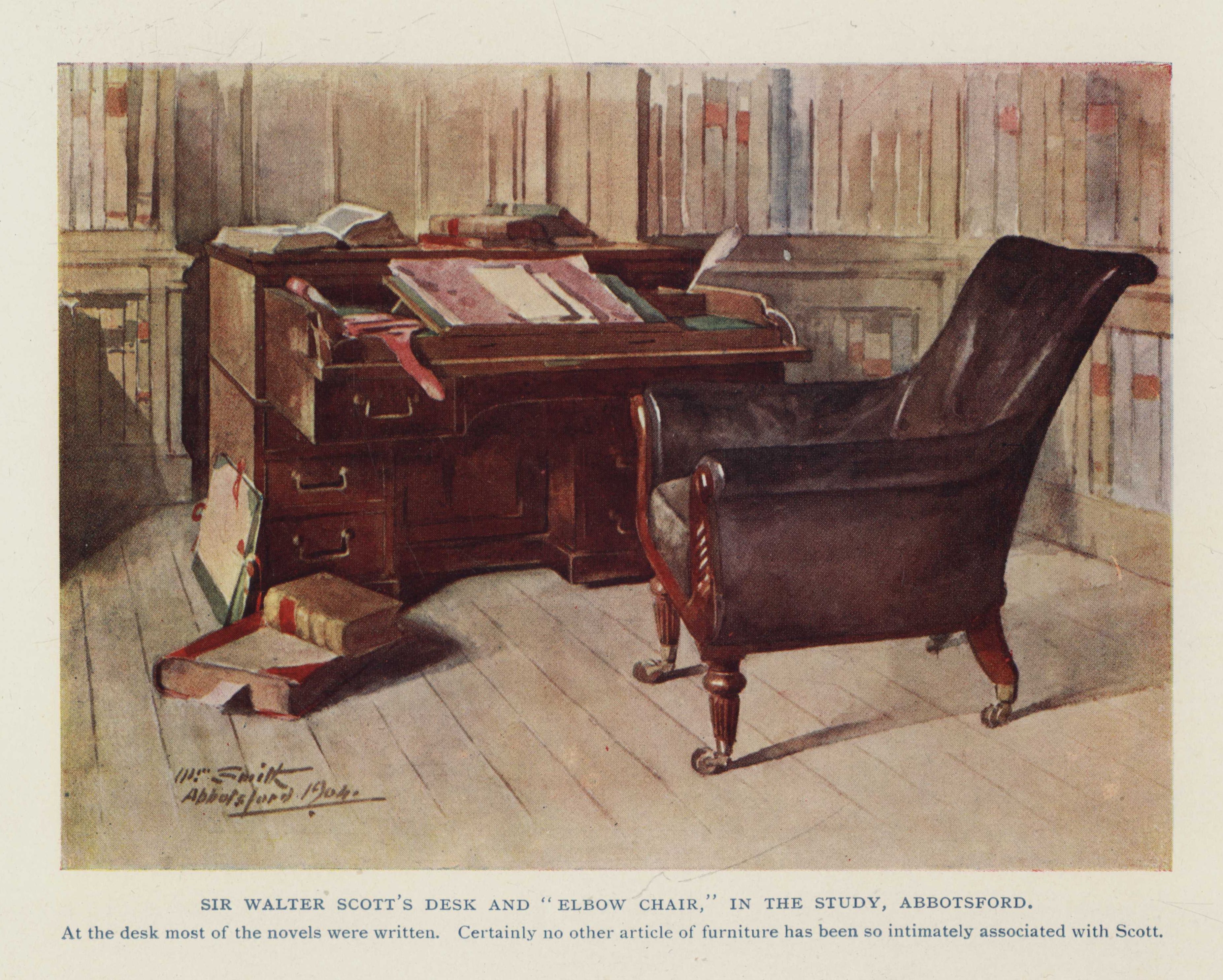 At the desk most of the novels were written. Certainly no other article of furniture has been so intimately associated with Scott.