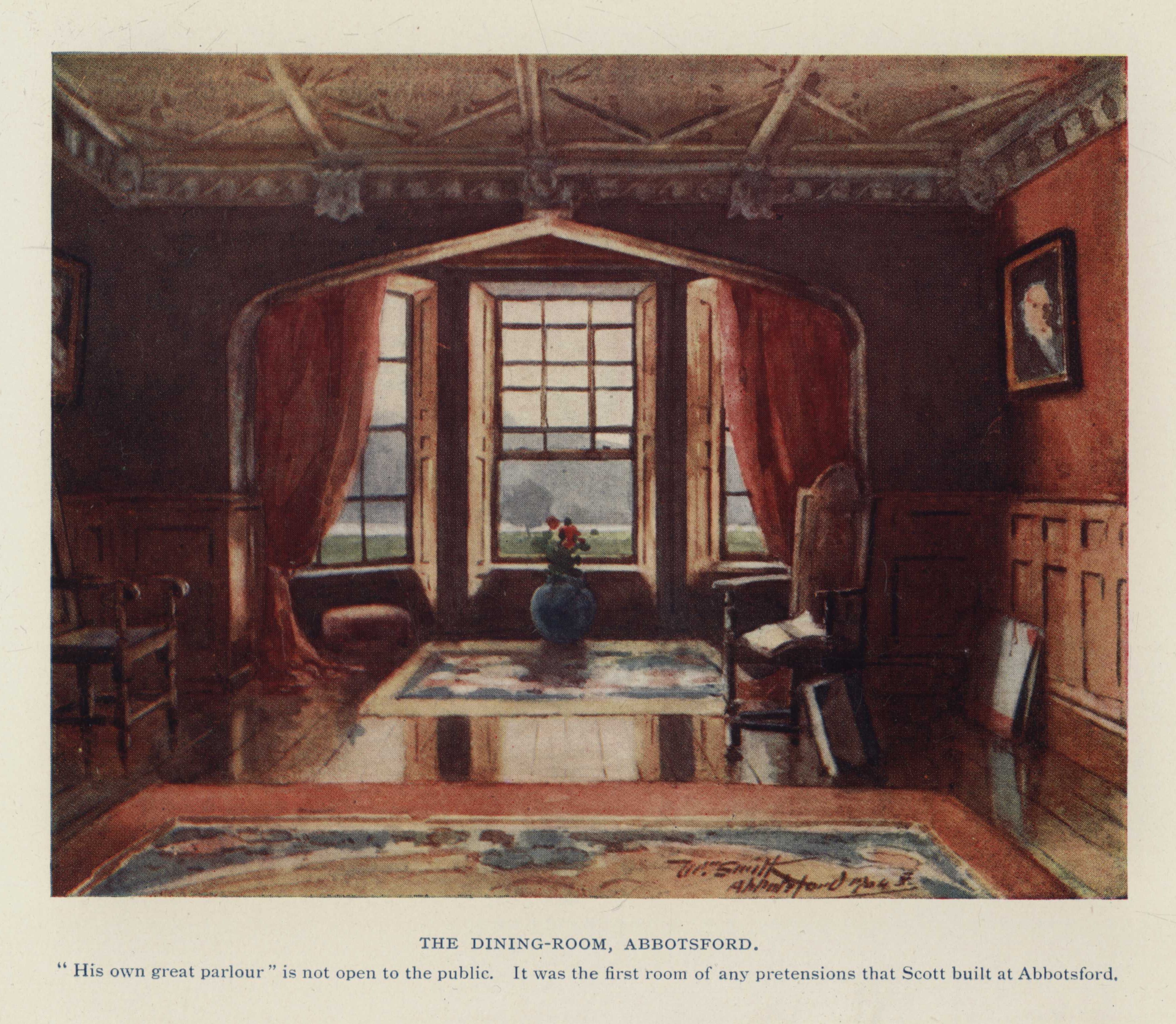 As this is not a guide-book, we shall not give here a minute catalogue of the treasures to be seen at Abbotsford, referring the reader instead to Mrs. Maxwell-Scott's excellent catalogue of the 'Armour and Antiquities.' But we are sure that none who visit the place will come away unsatisfied, or will fail to be moved by the personal relics of the Great Wizard, such as his chair, his clothes and writing-desk, which bring before us the man himself, for whose memory Abbotsford is but a shrine.