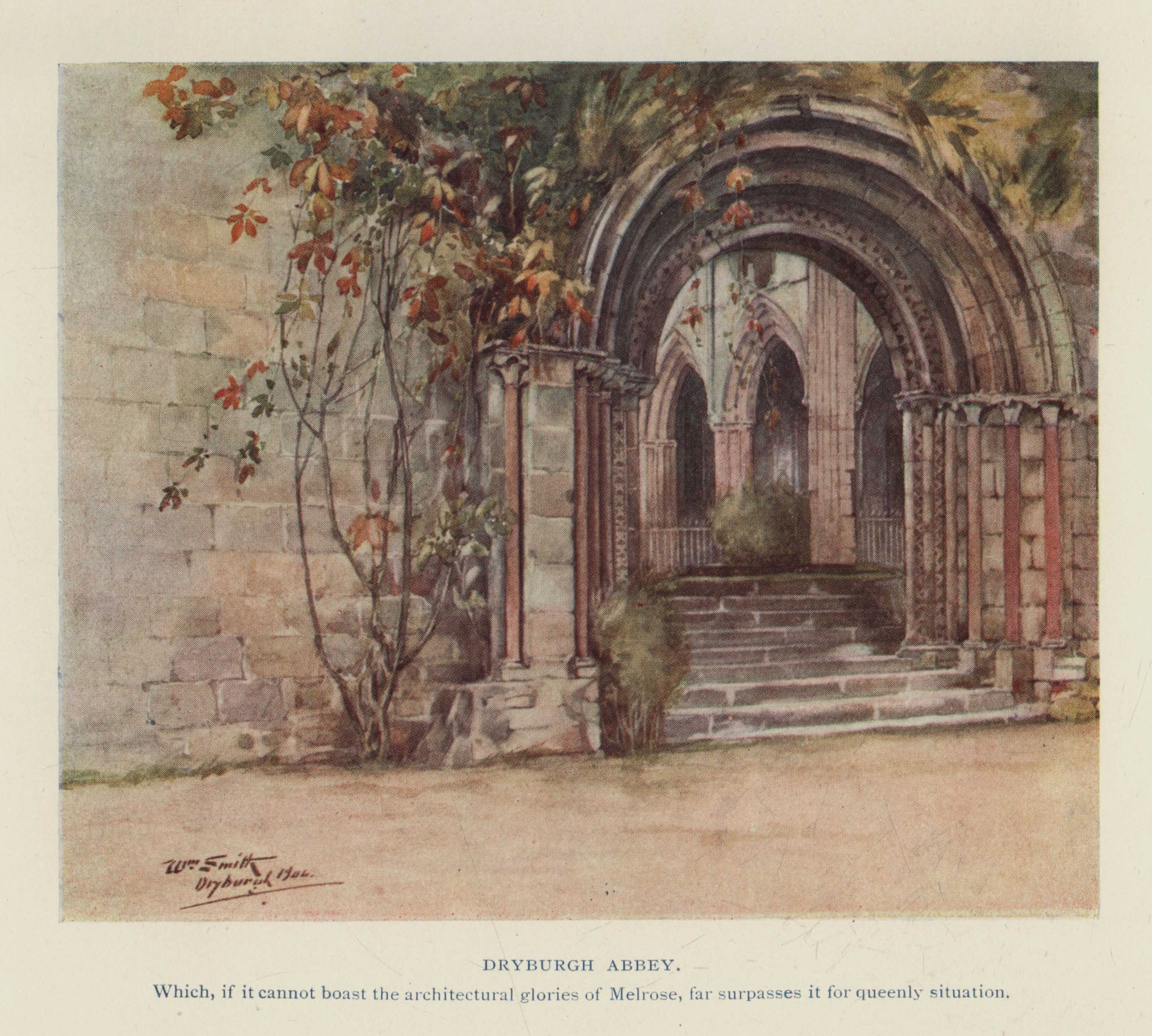 It is scarcely necessary to recall that Scott on both sides of his house was connected with the Border Country—the 'bold bad Border' of a day happily long dead. He would have been a reiver himself, more than likely, and one of its nameless bards to boot, had he lived before the Border felt the subdued spirit of modern times. A descendant of Wat of Harden, linked to the best blood of the Border, and with every phase of his life redolent of the Border feeling, history has had no difficulty in claiming Sir Walter Scott as the most representative Border man the world has seen. He was not born in the Border Country, but practically all his life was spent there. He came to the Border a sickly, delicate child, between his third and fourth year, and for threescore years and one he seldom left it for any lengthened interval. Edinburgh was the arena of much of his professional career. But he was happiest, even amid the most crushing sorrows of his life, when within earshot of the Tweed. There was not a blither or sunnier boyhood than Scott's at Rosebank, where even then he was 'making' himself, and dreaming of the days that were to be. At Ashestiel, the birthplace of the most popular poetry of the century before Byron blazed upon the literary horizon, his life was singularly untrammelled. Ashestiel, from being off the beaten track perhaps, seems to have lost favour somewhat with the Scott student. At any rate, it is not the shrine it should be, although in several respects it is more interesting to lovers of Scott than even Abbotsford itself. As for Abbotsford, may we not say that it is at once the proudest, and the most stimulating, and the saddest memorial ever associated with a man of letters? All these places, comprising the three periods of Scott's life—Rosebank, Ashestiel, Abbotsford—lie as close to the Tweed as can be—none of them more than a few hundred paces from it at the outside. And when the great Borderer's task was accomplished, where more fitly could he have rested than with the river of his love and of his dreams singing ceaseless requiem around his last low bed?