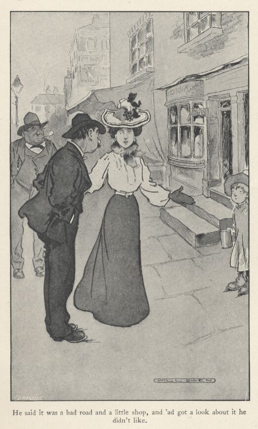 “Wot's the matter?” ses the woman, looking at 'im.