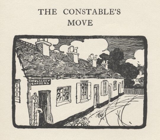 It was about a week after the cat 'ad disappeared that George Barstow was standing at 'is door talking to Joe Clark, who was saying the cat must be dead and 'e wanted 'is property, when he sees a man coming up the road carrying a basket stop and speak to Bill Chambers. Just as 'e got near them an awful “miaow” come from the basket and George Barstow and Joe Clark started as if they'd been shot.