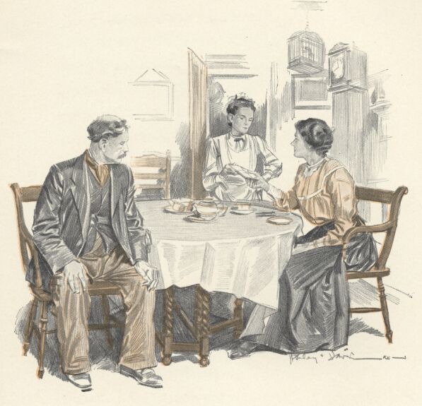 Left to herself, Mrs. Scutts returned to the bedroom and, poking the tiny fire into a blaze, sat and pondered over the willfulness of men.