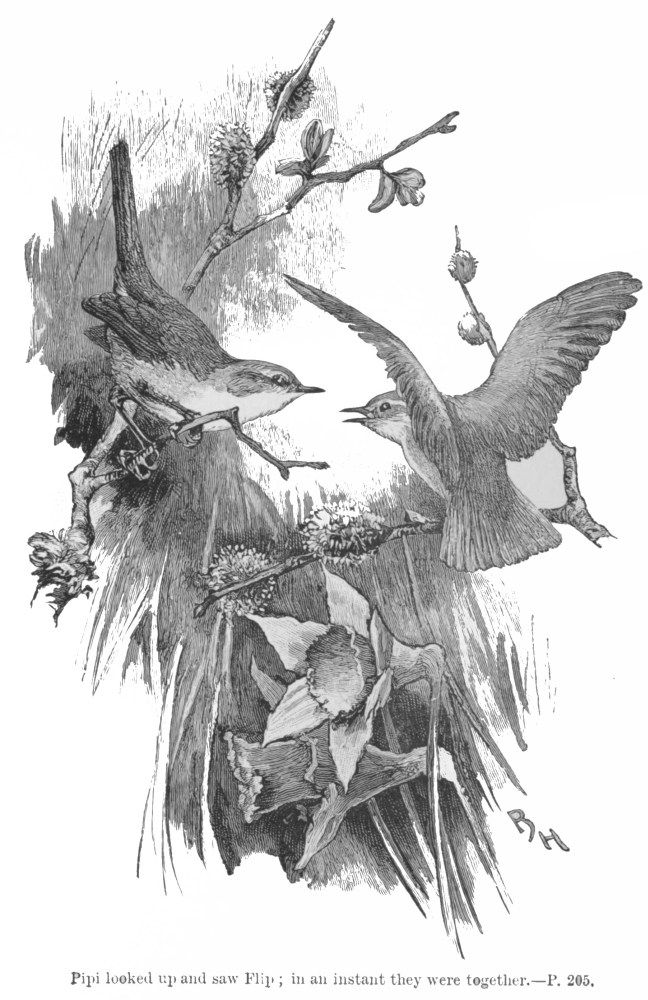 Yes, it was Pipi beyond all doubt; and Flip, glued to his bough by amazement, gave out such a strain of song as he had never in his whole life before been able to produce. Pipi looked up and saw Flip; in an instant they were together, and in such a state of tremor and delight, that poor Mrs. Flip was left quite out in the cold, and became for the first time in her life jealous of a cock bird.