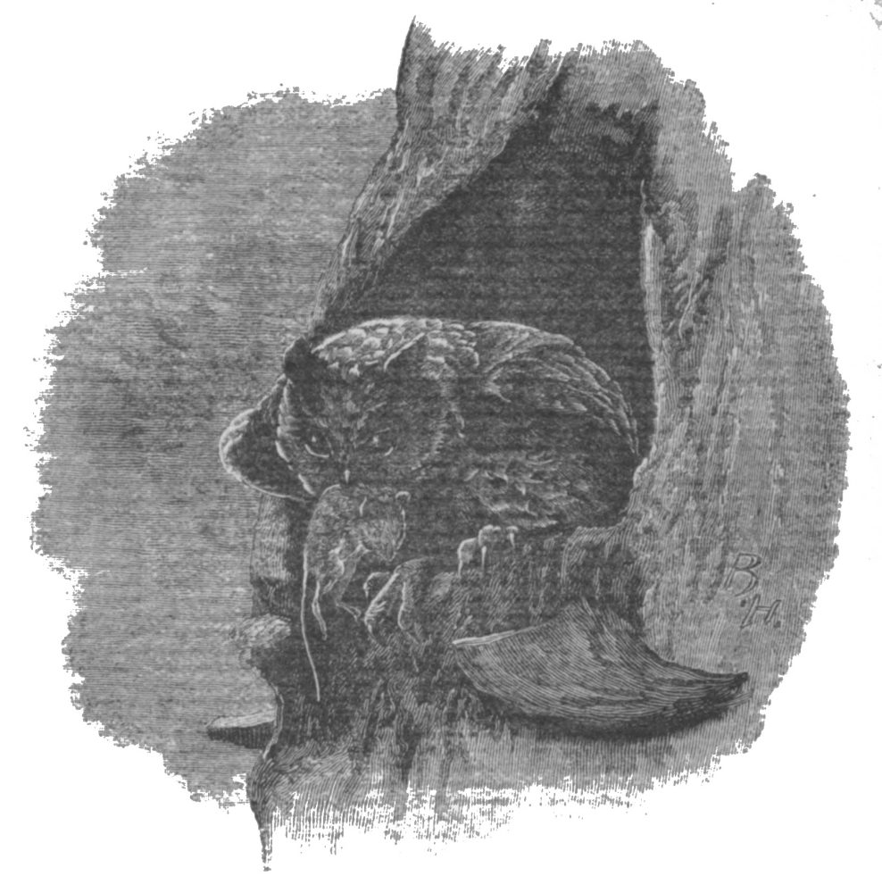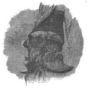 And now, but for the voice, all is silent again for a few minutes. Stay, who is this coming down the “light,” betraying his presence by the crackling of a dry twig beneath his boot? It is Mr. Weekes, bent on further profitable destruction; who would not have ventured himself in the wood after dark for fear of ghosts and other terrors, but is now urged to unwonted courage by the hope of gain and by the companionship of his old gun. He is making for the tree where he saw the owl at sunset.