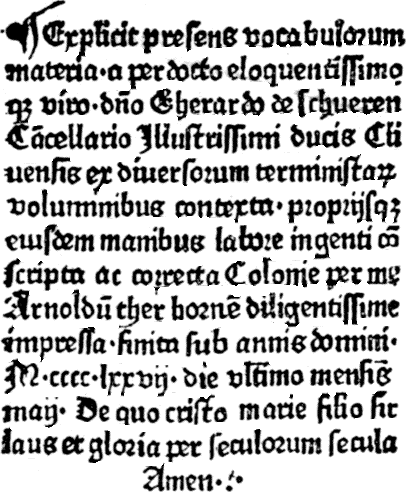 Et ego Johannes universitate Lova- num duxi opus hoc ferme tam labori- ad finem usque lito signo consig- pite libri palam |