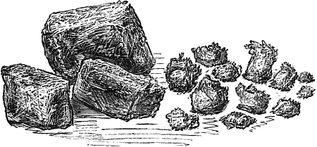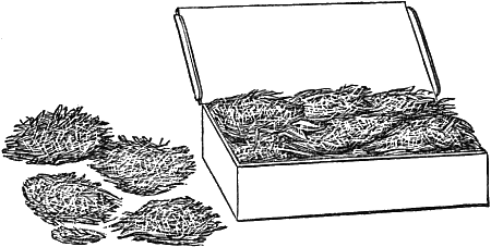 There is a kind of spawn used in some gardens called mill-track mushroom-spawn, which is made in a more simple manner than the preceding. It would seem to be simply spawn that has spread through the thoroughly amalgamated droppings of a mill-track. The material is rather[28] soft and free in texture, is usually sold in large and somewhat irregular lumps, and is much used by some cultivators.
