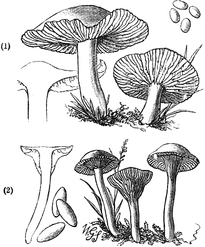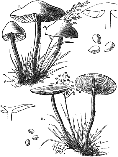 The illustrations showing the cave-culture of mushrooms are from my “Parks, Promenades, and Gardens of Paris.” And the frontispiece is after two large cuts of the mushroom caves of Paris, which appeared in the Illustrated London News some time after the appearance of my work. The illustrations of edible fungi are by Mr. Worthington G. Smith, who knows and draws these interesting subjects so thoroughly well; and the other figures are by Mr. Hodgkin.