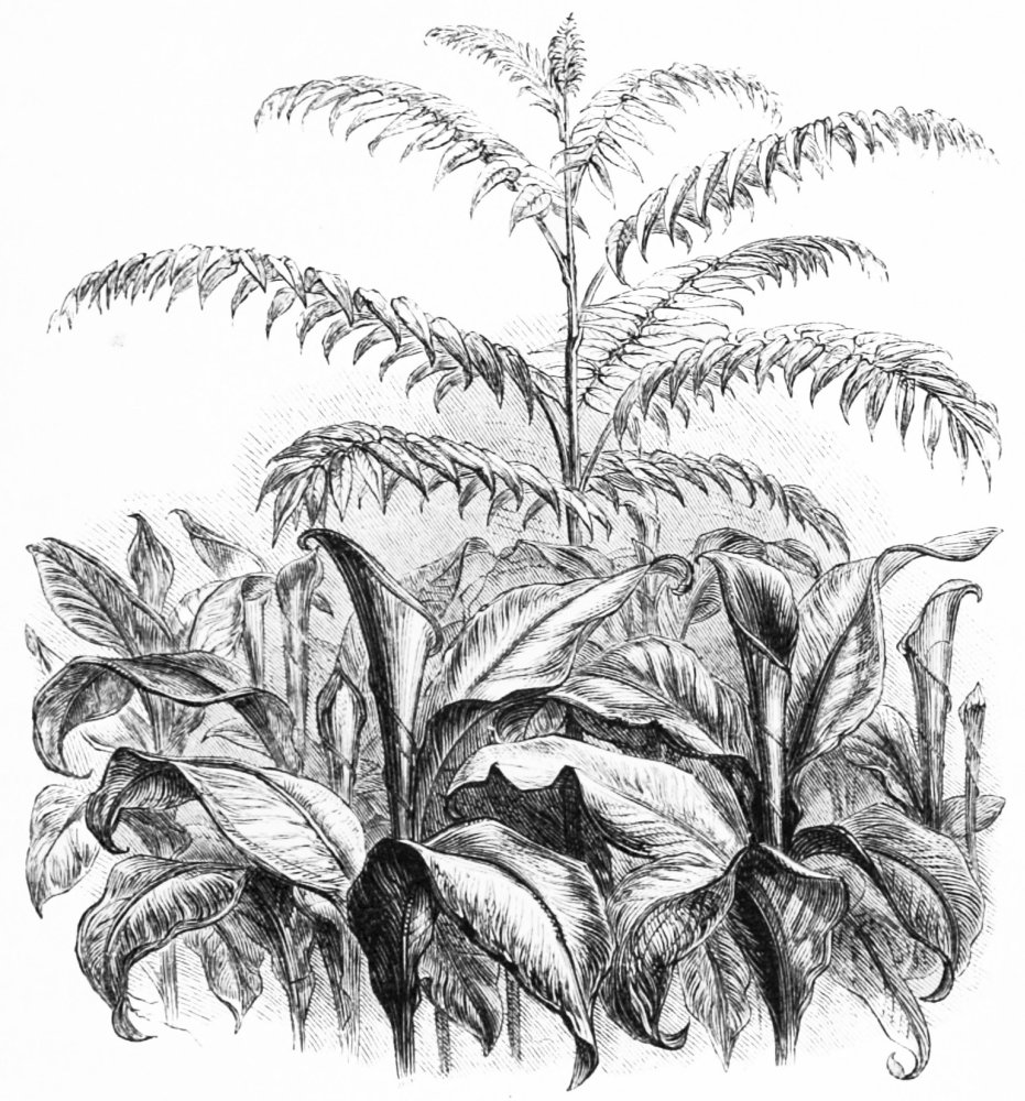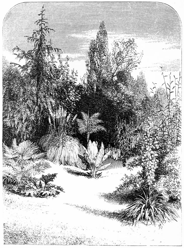 THIS book is written with a view to assist the newly-awakened taste for something more than mere colour in the flower-garden, by enumerating, describing, indicating the best positions for, and giving the culture of, all our materials for what is called “subtropical gardening.” This not very happy, not very descriptive name, is adopted from its popularity only; fortunately for our gardens numbers of subjects not from subtropical climes may be employed with great advantage. Subtropical gardening means the culture of plants with large and graceful or remarkable foliage or habit, and the association of them with the usually low-growing and brilliant flowering-plants now so common in our gardens, and which frequently eradicate every trace of beauty of form therein, making the flower-garden a thing of large masses of colour only.