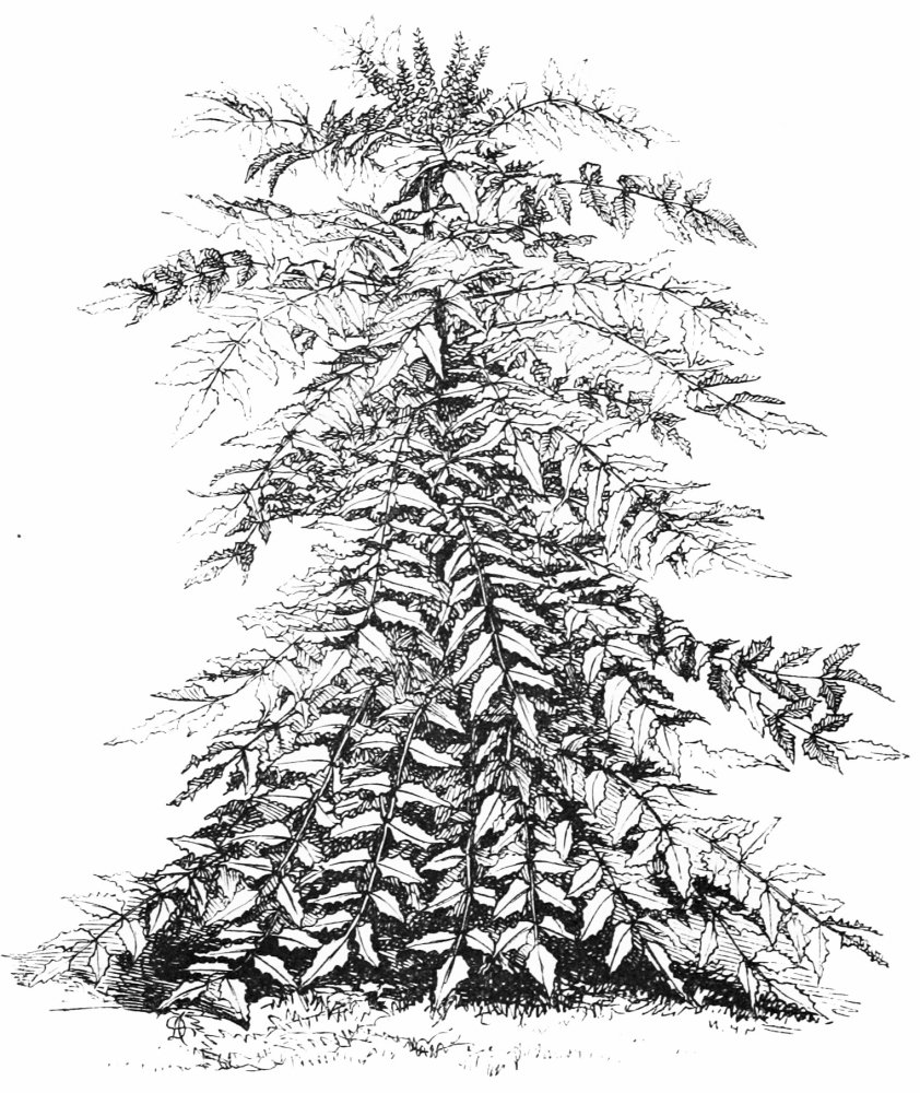 List of Ferns that may be grown with advantage away from the fernery proper.