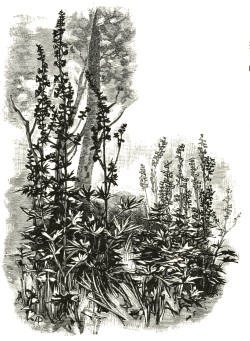 There has been some misunderstanding as to the term “Wild Garden.” It is applied essentially to the placing of perfectly hardy exotic plants in places and under conditions where they will become established and take care of themselves. It has nothing to do with the old idea of the “wilderness,” though it may be carried out in connection with that. It does not necessarily mean the picturesque garden, for a garden may be highly picturesque, and yet in every part the result of ceaseless care. What it does mean is best explained by the winter Aconite flowering under a grove of naked trees in February; by the Snowflake growing abundantly in meadows by the Thames side; by the perennial Lupine dyeing an islet with its purple in a Scotch river; and by the Apennine Anemone staining an English wood blue before the blooming of our blue bells. Multiply these instances a thousandfold, illustrated by many different types of plants and hardy climbers, from countries as cold or colder than our own, and one may get a just idea of the wild garden. Some have erroneously represented it as allowing a garden to run wild, or sowing annuals promiscuously; whereas it studiously avoids meddling with the garden proper at all, except in attempting the improvements of bare shrubbery borders in the London parks and elsewhere; but these are waste spaces, not gardens.