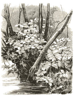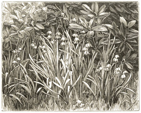 I wish it to be kept distinct in the mind from the various important phases of hardy plant growth in groups, beds, and borders, in which good culture and good taste may produce[viii] many happy effects; distinct from the rock garden or the borders reserved for choice hardy flowers of all kinds; from the best phase of the sub–tropical garden—that of growing hardy plants of fine form; from the ordinary type of spring garden; and from the gardens, so to say, of our own beautiful native flowers in our woods and wilds. How far the wild garden may be carried out as an aid to, or in connection with, any of the above in the smaller class of gardens, can be best decided on the spot in each case. In the larger gardens, where, on the outer fringes of the lawn, in grove, park, copse, or by woodland walks or drives, there is often ample room, fair gardens and wholly new and beautiful aspects of vegetation may be created by its means.