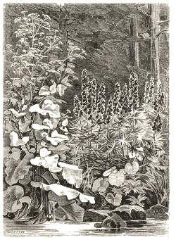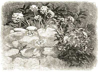 The illustrations are, with a few slight exceptions, the work of Mr. Alfred Parsons, and the drawing and engraving have been several years in execution. They are after nature, in places where the ideas expressed in the first small edition of the book had been carried out, or where accident, as in the case of the beautiful group of Myrrh and white Harebells, had given rise to the combinations or aspects of vegetation sought. I cannot too heartily acknowledge the skill and pains which Mr. Parsons devoted to the drawings, and to the success which he has attained in illustrating the motive of the book, and such good effects as have already been obtained where the idea has been intelligently carried out.