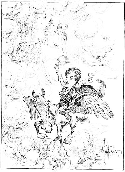 Tam started for home on his good gray mare, Meg, but when he reached old Alloway Church he saw lights, and, made brave by the Scotch whisky, he boldly looked in. He saw the witches dancing, the devil playing the fifes, and a young woman he knew was in the[224] carousal. Tam foolishly called, the lights went out, and it was up to Meg to get away from the swarm of witches who came in hot pursuit. The leading lady of the gang was right upon poor Tam when he came to the bridge, his hope of escape, for witches cannot cross running water. With one great jump Meg saved her master.