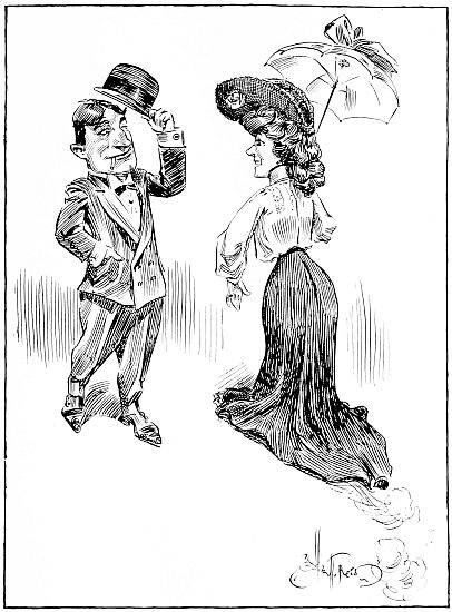 I do not want to seem to be faultfinding, so I will only say that the grand concert on the Cameronia was not much worse than is usual on shipboard. Everybody knows that during a voyage some night is designated as concert night, a program is given by the passengers, and a collection taken for the benefit of the Sailors’ Home or some such charitable object. But only those who have actually made the trip and attended a concert realize the painful nature of the operation. A notice is posted on the bulletin board asking for volunteers for the program, and aspiring genius directly or through friends offers itself for the entertainment. A dignified gentleman who can’t tell a funny story but thinks he can is selected for chairman. Sometimes a really good musician or entertainer is inadvertently included in the program, but this[233] is not often. No mistake is made in the choice of pretty girls who take up the collection. Our concert was opened by a bass solo, the guilty party being a man with his name parted in the middle and old enough to know better. He rendered (that’s the proper word) the old Roman favorite, “Only a Pansy Blossom.” When he came to the chorus about a faded flower he waved a yellow chrysanthemum in the air to a tremulo accompaniment. This was not a comic song, but a serious, sentimental selection, and the singer was an Englishman. The Scotch and English in the room heaved sighs and said to each other, “How beautiful!” The Americans poked each other in the ribs and almost wept in the effort to restrain their laughter. Of course he was encored, and he rendered again. This time it was a ballad about the golden tress of my darling, and in the touchiest of the touching lines he drew forth from his vest a piece of female switch, peroxide in color and horsetailish in effect. It was a great effort, and the serious fellow-country-men heaved more sighs of appreciation, while an American girl at my right whispered out[234] of her handerchief, “I know I’m going to scream!” Then a Scotchman sang an Irish song. Now a Scotchman can’t get the Irish brogue any more than he can understand an American joke. He was enthusiastically encored, and responded with a French dialect story, in broad Scotch. It was funnier than he knew. An amateur violinist contributed an execution of a sonata or a nocturne or a cordial of some kind. A famous story-teller recited a few choice bits from the column of some London magazine, on which the American copyright expired many years ago. The chairman in a few touching words then explained the object of the charity for which the fund was to be collected, and the touching was completed by the young ladies with pleasant smiles.