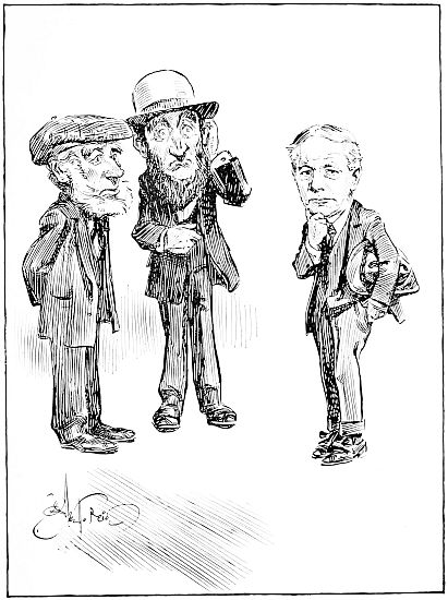 Fin MacCoul, the giant, was the champion of Ireland. He had knocked out all rivals and no one could stand in front of him for a second round. He was as great a man in Ireland as John L. Sullivan used to be in Boston. Over in Scotland a certain Caledonia giant boasted that he could lick any man on earth, Irish preferred. He gave out an interview to the newspapers, saying that if it were not for the wetting he would cross over and take the Irish championship from Fin. After much of the usual mouth-work between the champions, Fin got permission from the king, constructed the Causeway from Ireland to Scotland, and dared the Caledonian to come across. The Scot was game, and the match was pulled off without police[207] interference, resulting in a victory for Fin, who kindly allowed his beaten rival to settle in Ireland and open a saloon. Ireland was then, as it is now, the finest country in the world, so the Scotchman lived happily ever afterward. The Causeway gradually sank into the sea, and all that is now in sight is the Irish end and a few islands between it and the Scottish coast.