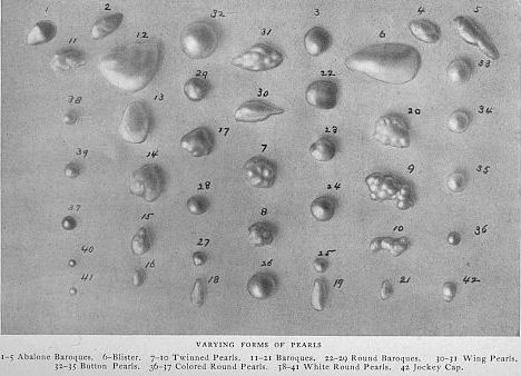 On almost every tropical sea that washes a shore near the equator, when the time of storm is over, boats ride over the shallows, and men dive from them for the pearl oyster as they have done for ages. Black slaves for Arab masters in the Red Sea and the Persian Gulf: Tamil and Singhalese in the Indian waters: Polynesians about the islands of the South Seas: Indians and other natives along the Atlantic and Pacific coasts of tropical America, and not a few white men in "dress" off the coasts of Australia. Your pearls have seen the dusky man-fish come silently and swiftly from the world of air to wrench the gaping shells that held them, from their anchorage. It may be your pearl lay twenty fathoms deep in the clear water of some lonely atoll in the great Pacific, among branching coral, and found its way from water's solitudes to the light of the Sun and admiring eyes by the hand of a bright-eyed Polynesian. It may have come from Egypt or the Indies, from Australia or Mexico; but from whatever quarter of the globe it came and by whom, it was born and grew somewhere at the bottom of the sea.