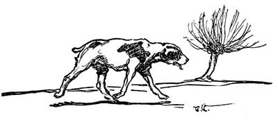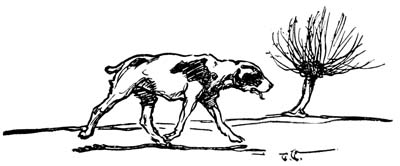 Thus far, strangely enough, he had not felt keen pangs of hunger, for it is natural for sick dogs to fast. But now he was painfully aware of a consuming thirst. He had occasionally reached out and lapped at the cool snow outside his covert, but while that had felt good to his fevered nose and mouth, it had not sufficed. Now his throat was parched, his tongue was thick and dry, and his head ached. If you do not believe that dogs have headaches, notice how your terrier thrusts his head against your knee next time he is ailing, and begs for the pressure of your hand.